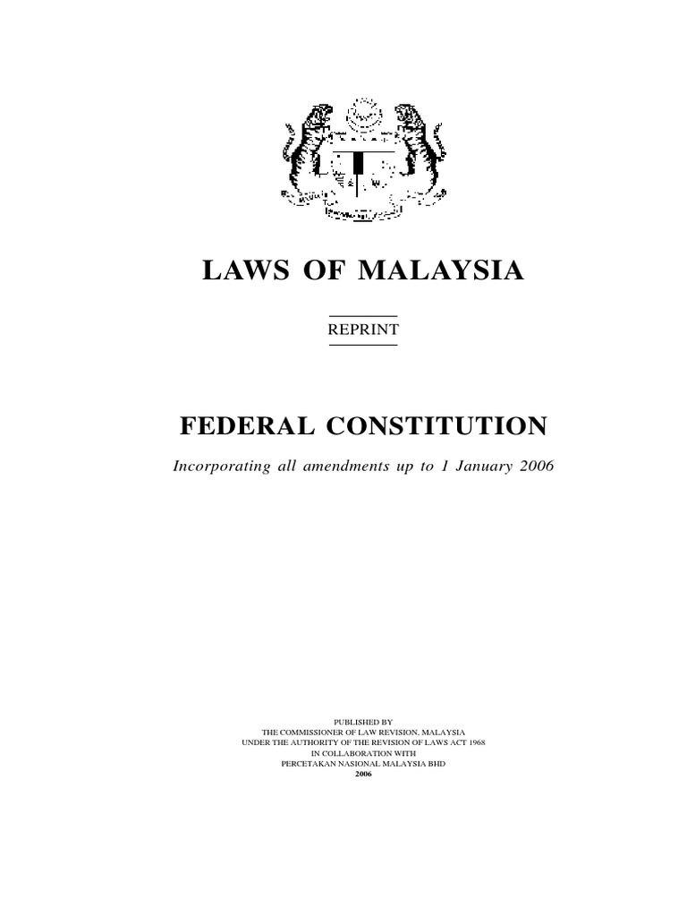 Dewan negara the dewan negara (the senate) is the upper house dewan rakyat the dewan negara (house of representatives) is the lower house parliament building. The federal constitution of malaysia is the supreme law of the nation that distributes the power of governance in accordance with the practice of a amendments with exception however, amendments to the powers of the sultans & their respective status (article 181), status of islam in the. Article 153 is one of the most controversial articles written in the federal constitution (fc) and to and malaysia are prominent examples of countries. The majority of the critics considers it for the creation of the racialist and unnecessary distinction amid the malaysians from different backgrounds ethnically since it has. (1) this constitution is the supreme law of the federation and any law passed after merdeka day which is go back to the contents page of the malaysian constitution. The malaysian constitution cannot be accurately described or understood without making references to its history. In article 152, it was decided that the national language would be the malay language. I refused to fly the malaysian flag because it looks more bn than malaysian. Malay is national language may use or teach/learn in other languages king may allow to use english for whatever official purposes he deems necessary. A subreddit for malaysia and all things malaysian. Constitutional discrimination under the malaysian constitution. Critics consider it to create an unnecessary and racialist distinction between malaysians of different ethnic backgrounds, because it has led to the implementation of affirmative action policies which benefit only the bumiputra. Consider article 153 of the malaysian constitution: