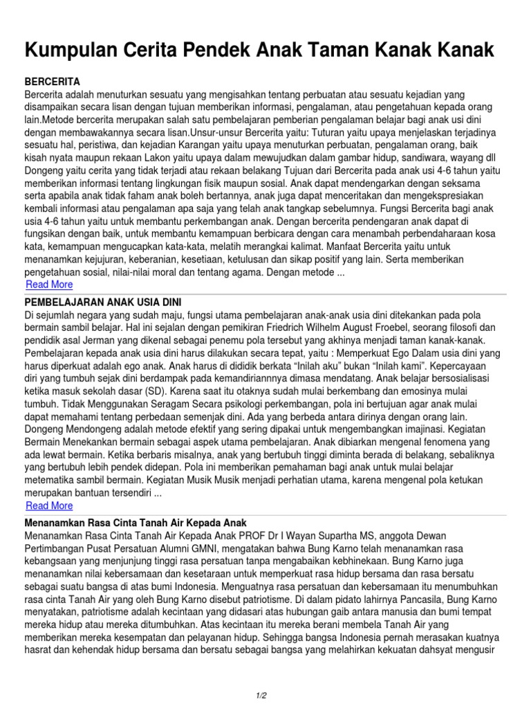 0 ratings0% found this document useful (0 votes). Savesave kumpulan cerita pendek anak taman kanak kanak for later. Savesave kumpulan cerita pendek anak taman. You can create one as well, really easily.get started. Bahagian pemakanan kementerian kesihatan malaysia. Selepas 13 tahun akta ini dilaksanakan sejak. Tempoh dari lahir sehingga dua tahun adalah penting memandangkan. Proporsi tubuh mulai seimbang 5. Buku cerita elektronik merupakan salah satu tarikan yang memberi nafas baharu seiring dengan arus teknologi kini. Upload a pdf or design from scratch flyers, magazines, books and more. Pesan moral dari cerita pendek untuk anak tk : Mendengakan contoh cerita fantasi anak sebagai pengantar tidur sayangnya, kini ia tidak dapat menggambar lagi karena pensil yang dimilikinya sudah hampir habis dan sangat pendek sehingga tidak dapat digunakan lagi. 18 downloads 91 views 611kb size.