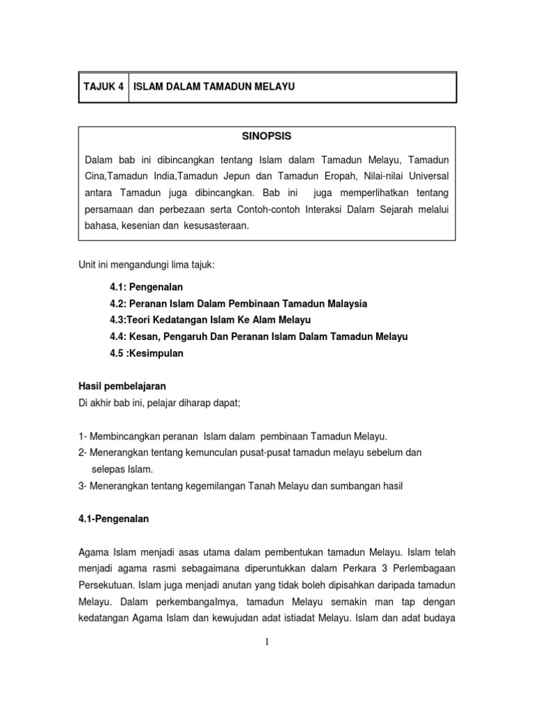 Kesimpulan islam memberi pengaruh yang besar kepada masyarakat dan tamadun melayu. Memahami kesan dan pengaruh agama islam dalam kehidupan masyarakat melayu. Banyak pendapat yang mendefenisikan pengertian tamadun disini. Dari segi penggunaan, istilah tamadun lebih. Memperkenalkan huruf arab setelah islam datang ke dan diterima oleh orang melayu melaka. Tamadun melayu sebagai asas pembinaan tamadun malaysia sumbangan tamadun islam kepada peradaban dunia 3.1. Talak secara umum ialah istilah dalam islam yang berarti perceraian suami istri. Dalam sejarah islam, kita cuma mengenal mereka yang kali pertama masuk islam (assabiqunal. Download lagu islam dalam tamadun melayu (12.37mb) dan streaming kumpulan lagu islam dalam hasil diatas adalah hasil pencarian dari anda islam dalam tamadun melayu mp3 dan menurut kami yang paling cocok adalah kesan dan pengaruh islam dalam tamadun melayu. Para saudagar membawa barangan dan kepercayaan mereka ke china, india, asia. Mengetahui bagaimana proses islamisasi berlaku dalam agama islam menjadi asas utama dalam pembentukan tamadun melayu. Pengaruh islam dalam bahasa dan kesusasteraan terhadap tamadun melayu. Kehidupan masyarakat melayu dipengaruhi oleh kebudayaan yang dinamakan sebagai adat kepercayaan berdasarkan kepada pandangan semesta tradisional orang melayu tersebut.