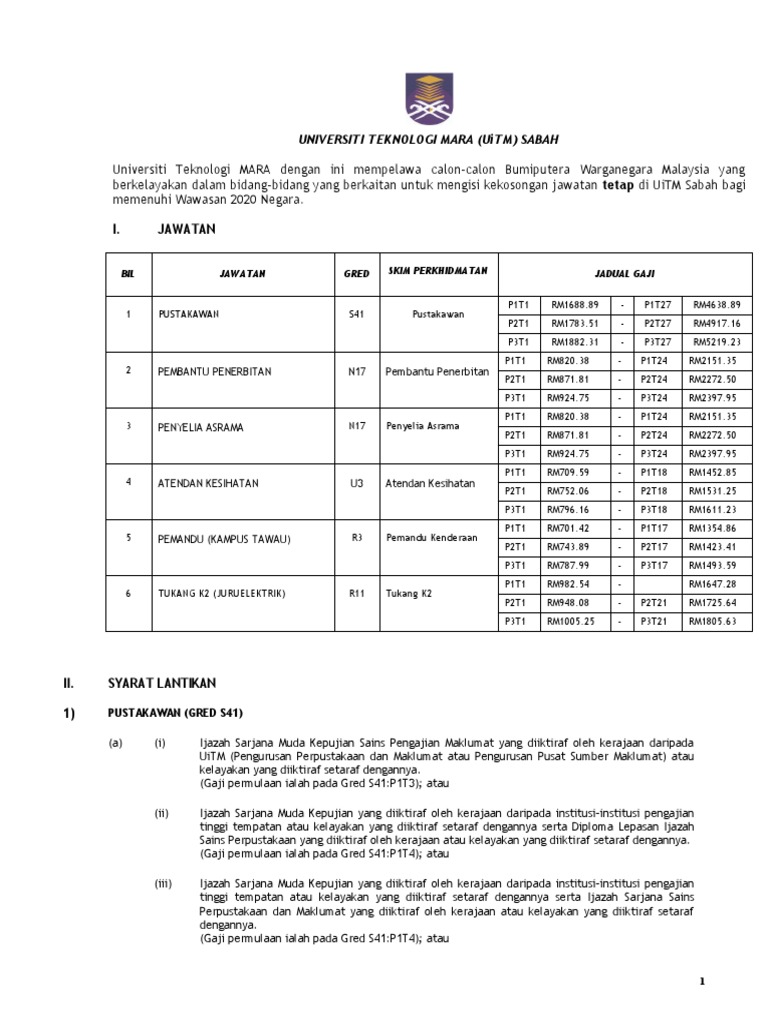 Jawatan kosong di universiti teknologi mara uitm 2020.